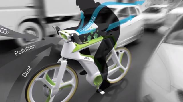 一眨眼,几年过去了,在看到中国共享自行车的火热后,这哥们突然又有了一个想法——为什么不利用自行车的便利去净化空气?