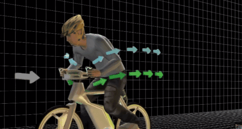 净化器会吸收雾霾空气,最后再排放出新鲜干净的空气,直接喷到骑自行车的人的脸上,一边骑车,一边如沐春风~